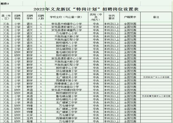 2.2022年义龙新区“特岗计划”招聘岗位设置表