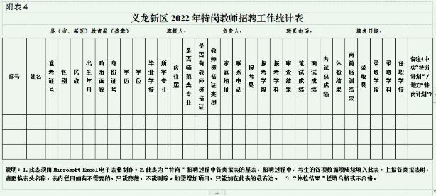 3.上报聘用签约人员名单和报到时间:2022年9月1日前,新区教育局将汇总审核后的《义龙新区2022年特岗教师招聘工作统计表》(附表3)盖章后扫描版、电子版以电子邮件形式报州教育局。