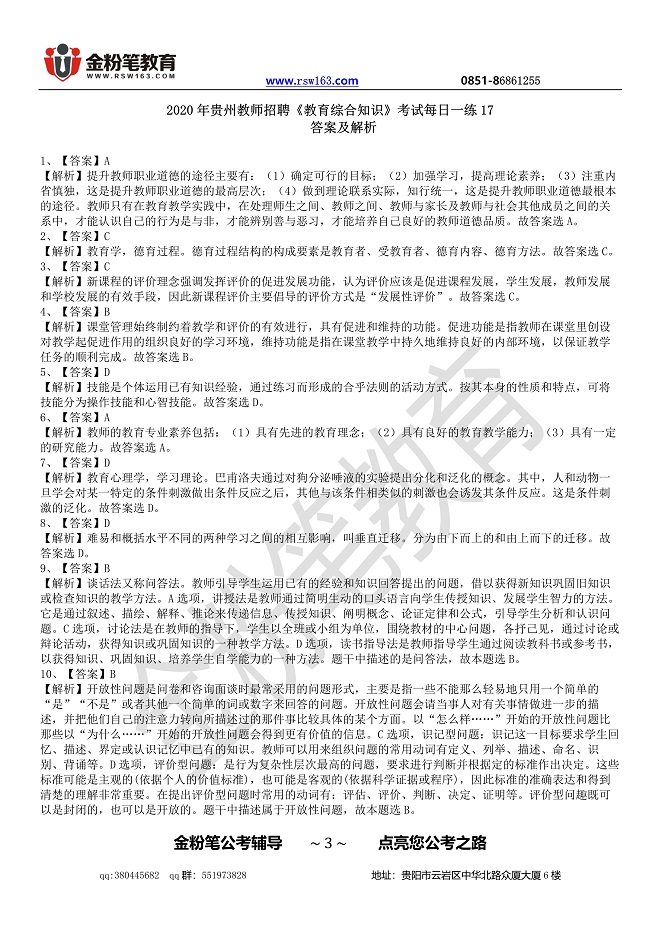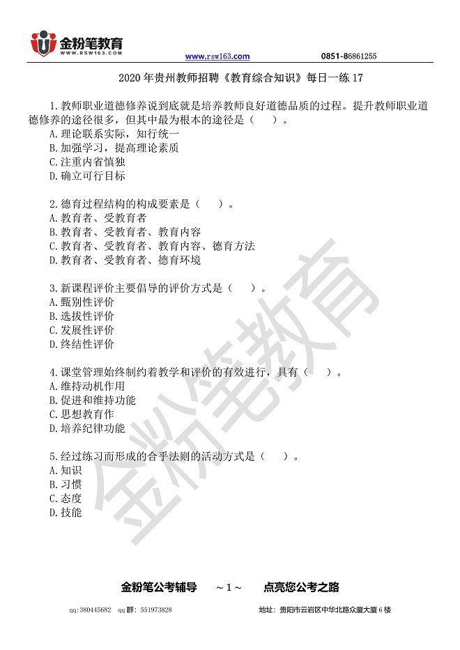 贵州教师招聘考试笔试题库提供教师招聘考试笔试科目《教育综合知识》和事业单位D类《综合应用能力》题目练习,题目包括教师考试专项练习题、模拟题、考试真题等,为了帮助考生更好的进行备考,金粉笔教育老师整理了关于《教育综合知识》教师考试题目。每日题目发布后,考生自行进行练习,更多教师招聘信息和考试题目请关注13378508157、13368515037(微同)。