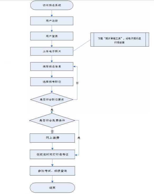 2021年贵州省考报名步骤:“报考者注册”→"报名登录"→“上传照片”→“填写个人信息”→“选择职位”→“报名信息确认”→“网上资格初审”→“网上缴费”→“完成”。