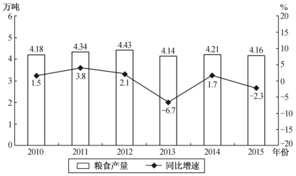 2010~2015年某市粮食产量及其增速